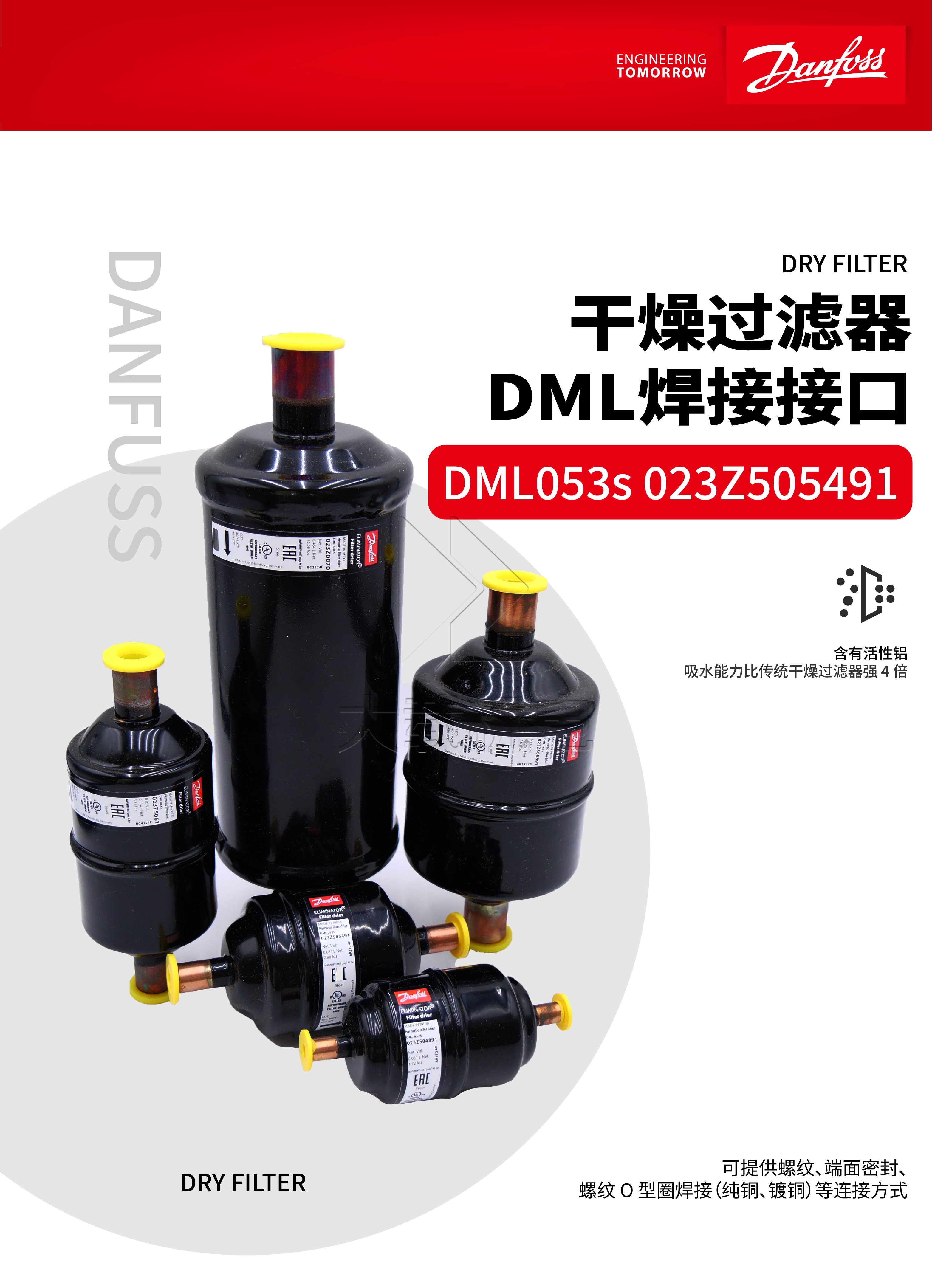 -所有丹佛斯干燥過濾器均包含端帽, 其設(shè)計為了提供更好保護(hù)且易于拆卸
