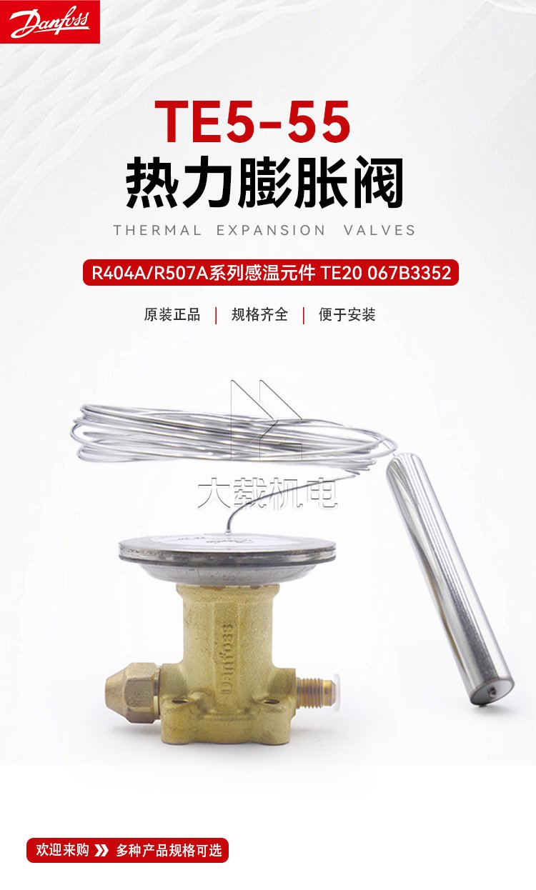 TE系列熱力膨脹閥是Danfoss按照至高標準設計的可換流口的熱力膨脹閥;適用于使用R22、R407C、R134a、R404A/R507等多種制冷劑;適用于制冷量范圍為11-280kW的冷凍、冷藏及空調裝置
