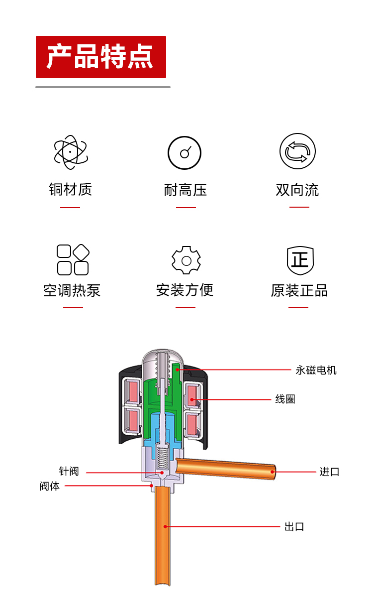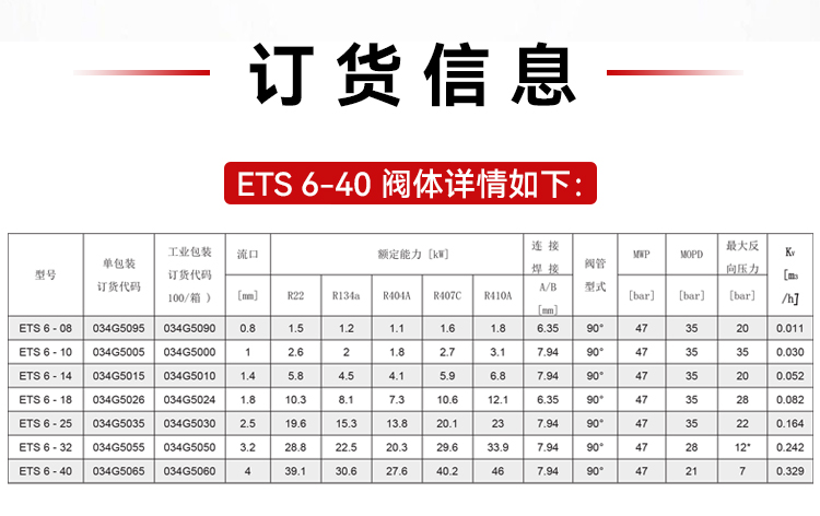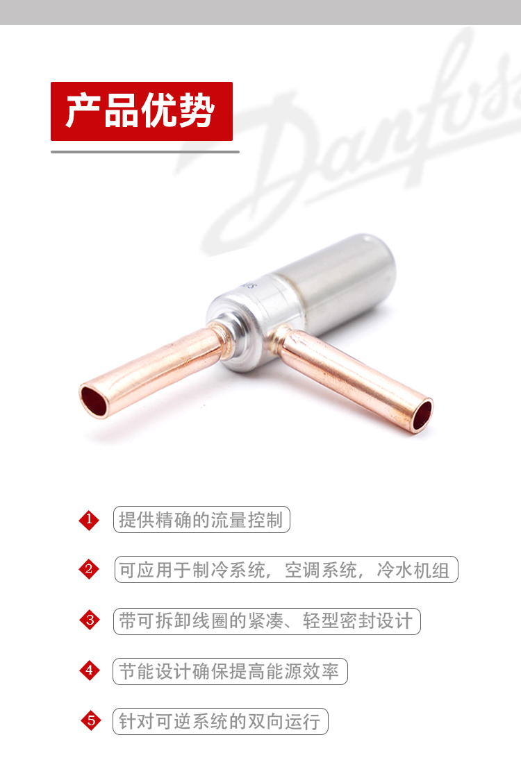 確保系統(tǒng)能效 l 精確的流量控制l 結(jié)構(gòu)緊湊、質(zhì)量輕 l 節(jié)電設(shè)計(jì) l 技術(shù)優(yōu)于、可靠性高 l 能力范圍廣,適用于各種常用制冷劑HCF、HCFC(例如:R410A, R407C, R404A,R134a, R22) l 適用于熱泵應(yīng)用的雙向流運(yùn)行