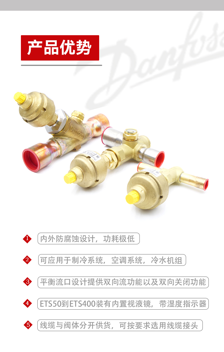 1.ETS12.5,ETS25,ETS50和ETS100設計用于HFC/HCFC工質,包括R410A,工作壓力高達45.5bar