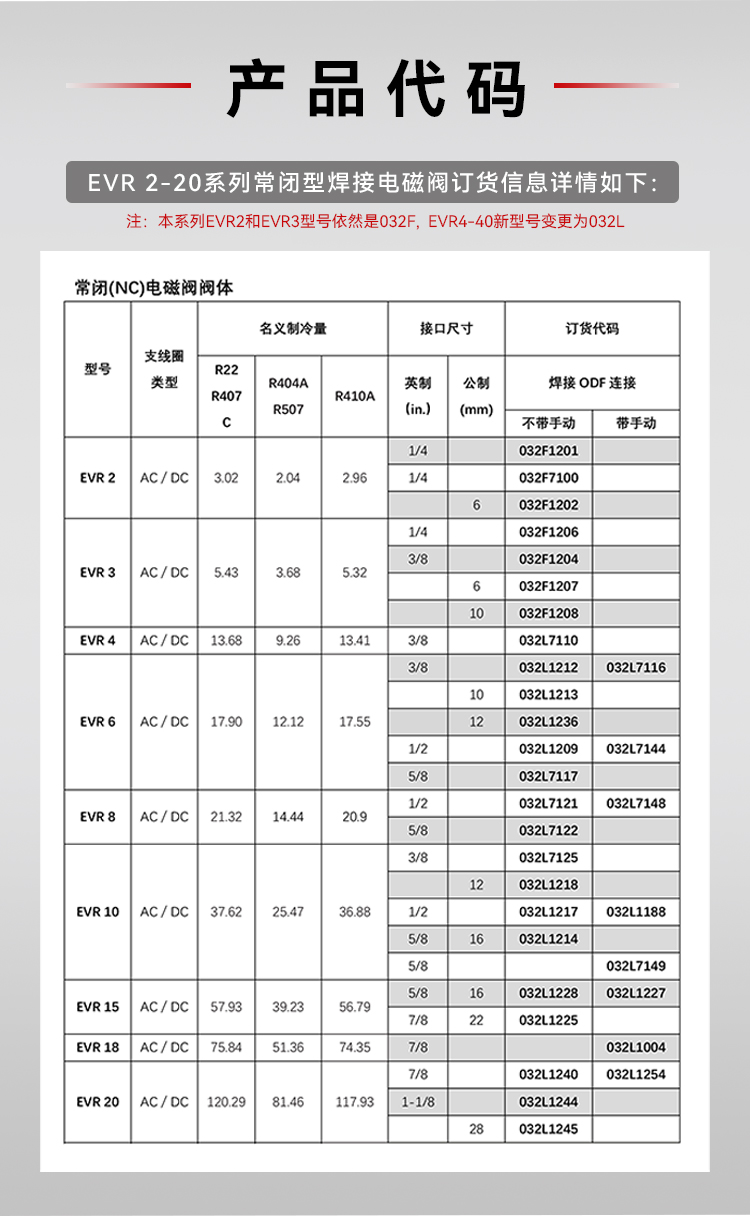 EVR 2 - EVR 20 為焊接連接且不帶手動閥桿,適用于采用 R152A, R32、R290、R600, R600a、R1234yf 和 R1234ze 作為工作流體的系統(tǒng)