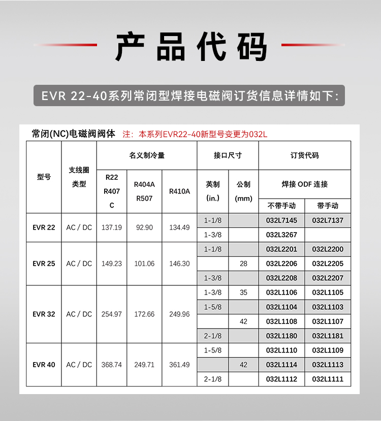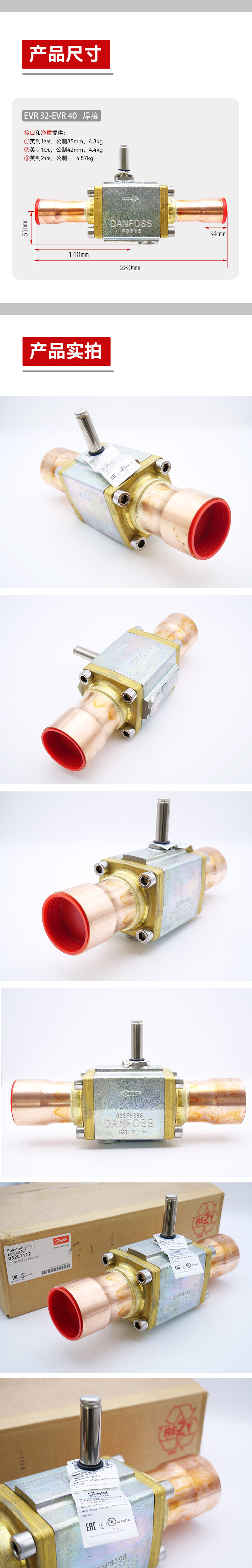 EVR 是一種直動式或伺服式電磁閥,適用于大多數制冷劑(包括可燃制冷劑)的液體、吸氣 和熱氣管路。 EVR閥門和線圈需分別訂購。
